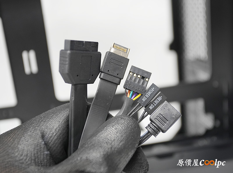 機殼線材有HD AUDIO、POWER SW、RESET SW、USB 19Pin、USB 20Pin、3Pin 5V RGB。