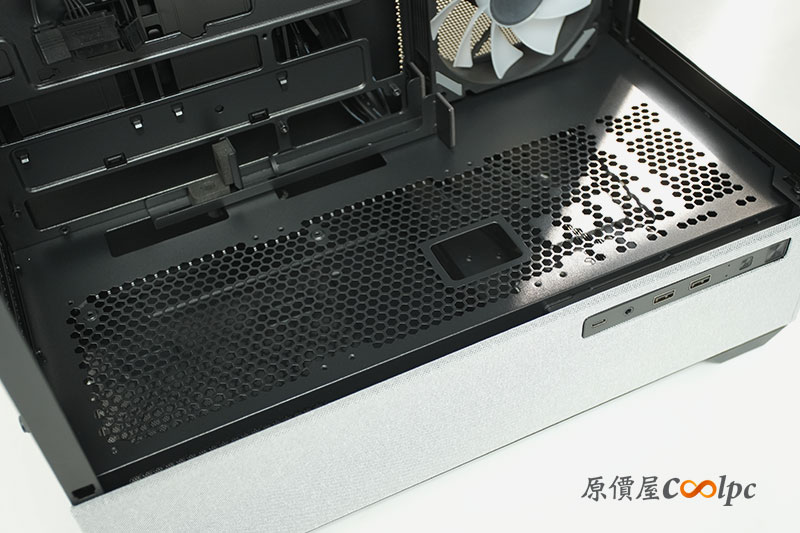 機殼頂端也有能安裝到 3 個 120mm 或 2 個 140mm 風扇的空間,當然也能自行安裝水冷排。這邊也設有一片磁吸式濾網,好方便阻止落塵。