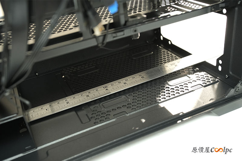 機殼內部擁有電源分艙設計。上面也有大面積的網孔設計,來提升整體的散熱效率。
