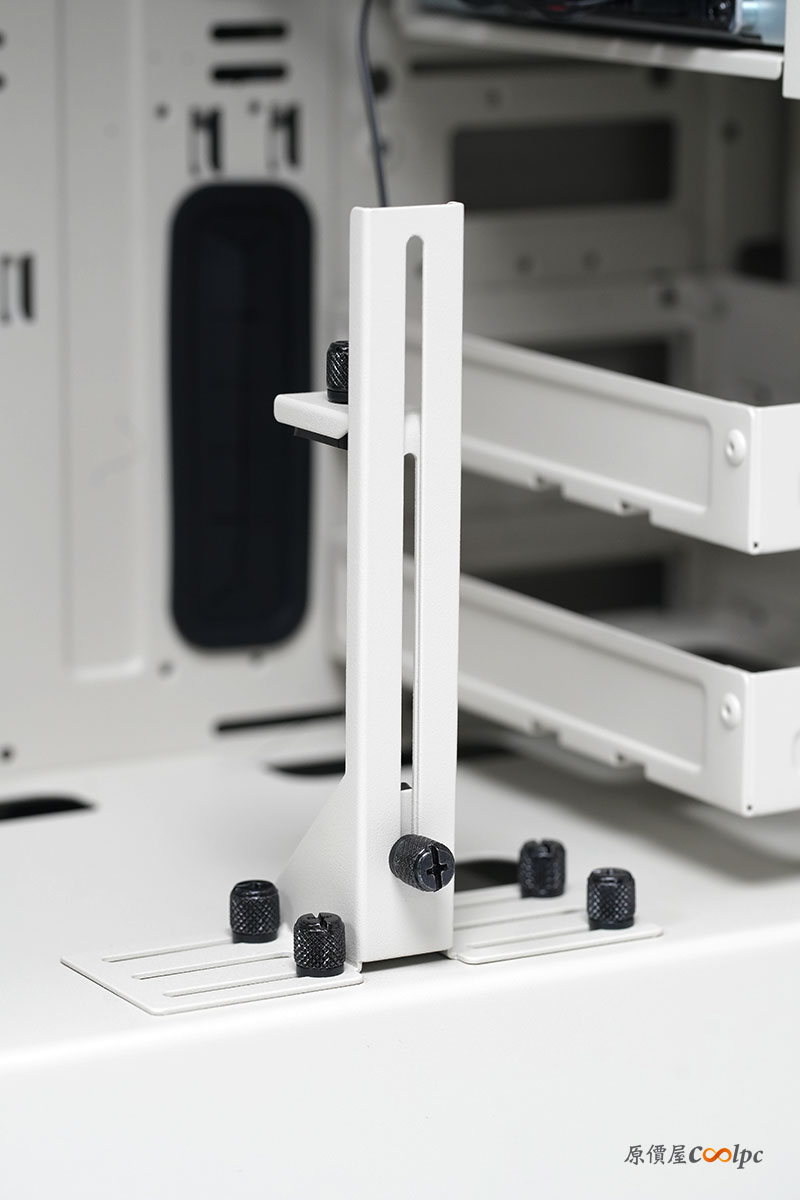 前方預留空間不算大,是因為設有能安裝更多儲存硬碟的支架設計,提升 DIY 玩家的支援彈性。