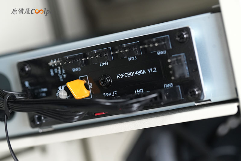 而機殼內風扇的主控也設在這邊。玩家只要自行將風扇都串接完成,就能透過前面滿的 TURBO 按鈕來調整風扇。