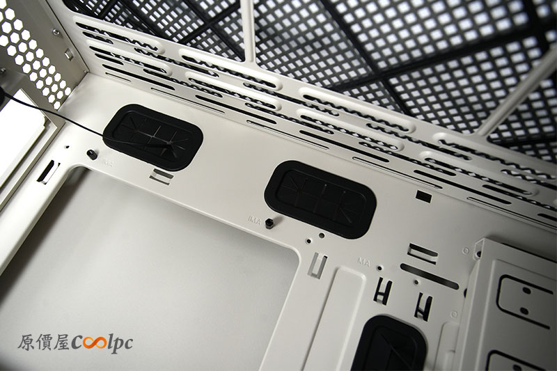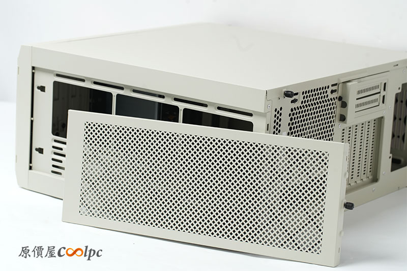 前面板風扇處,有著格柵設計的外罩,以防風扇在運轉時受到干擾。