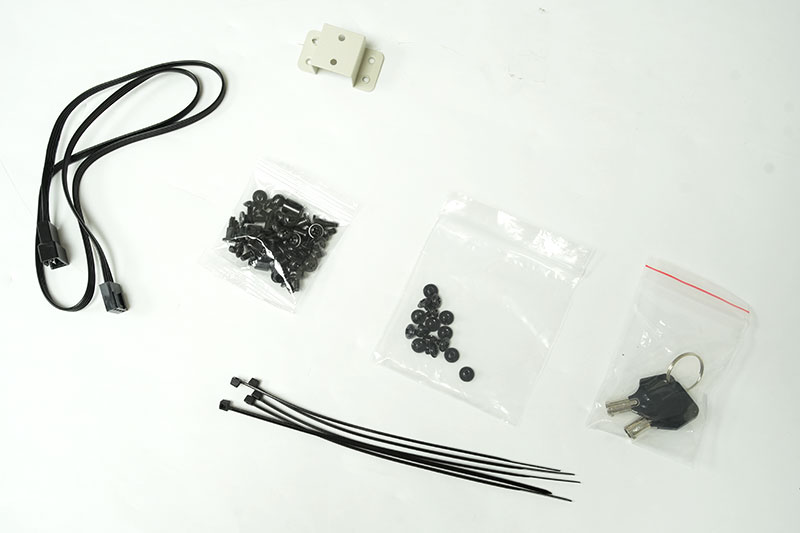 附有螺絲組、束線帶、延長接線、備用配件與前端 Lock 鑰匙。