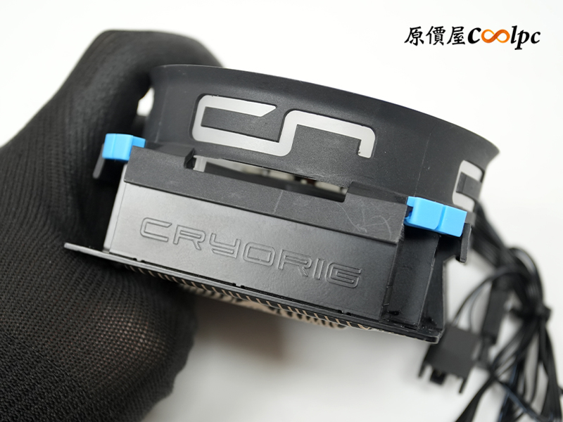 散熱器側面同樣保留了設計細節,可以看到 CRYORIG 全稱字樣以及品牌縮寫的 CR 標誌。