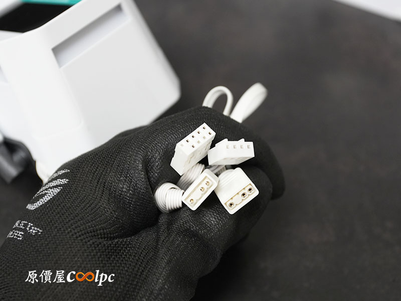 (點小圖放大)DeepCool LM360 WH 水冷散熱器顧名思義是 360mm 尺寸設計,冷排加入獨特動態平衡卸壓技術,降低漏液風險並延長壽命!預先安裝 3 顆 120mm 幻彩星環風扇(FL12 SE),質感除了全白設計之外,還有 ARGB 透光風扇 + 風扇中間的導光片,讓幻彩燈光魅力四射!此外風扇四邊角皆有防震軟墊,降低共振噪音。連接方式採用 8Pin 母孔整合 PWM 及 ARGB 訊號,DIY 更簡單!水冷管使用白色編織包覆,再加入兩條魔鬼氈束線,既美觀又耐用!