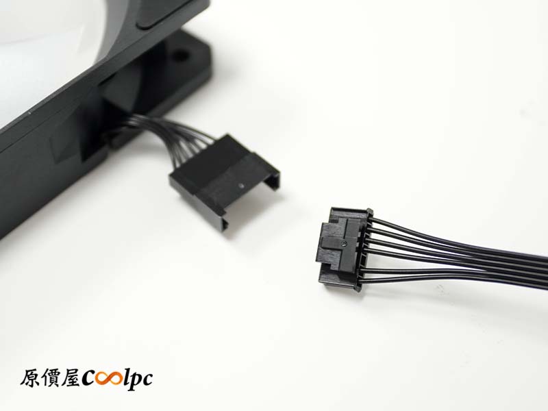 線材採用特規 PWM + ARGB 7-Pin 接頭,分接設計能配合機殼開孔彈性走線,讓背部走線更簡約。受限於手邊暫無機殼實測展示,這部分的理線美學就交給各位玩家自行發揮了!