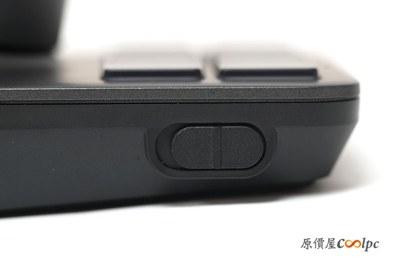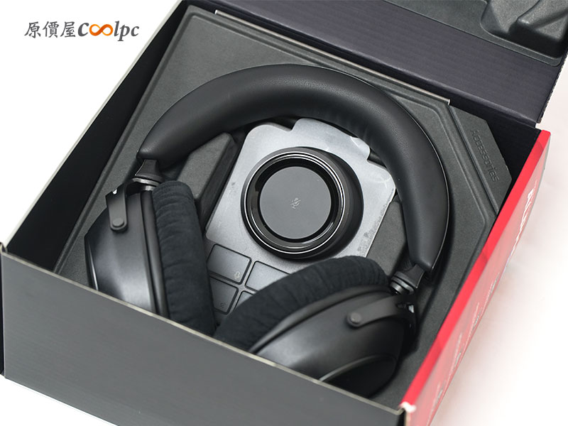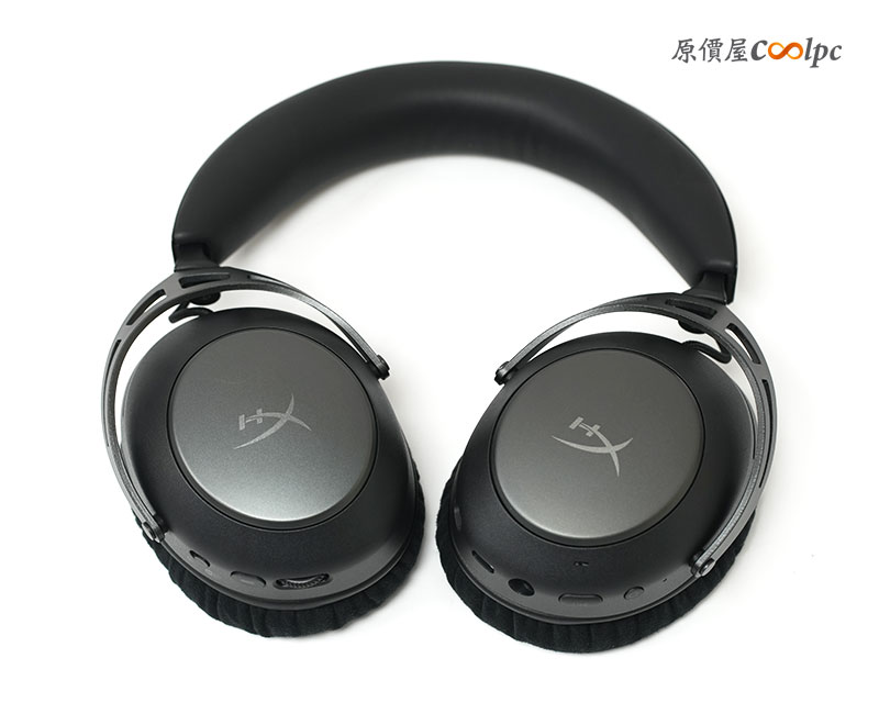 操作按鍵與接孔分布設置在兩邊的耳罩側邊。包含藍芽/2.4GHz 的模式撥鍵、音量滾輪、麥克風監聽。