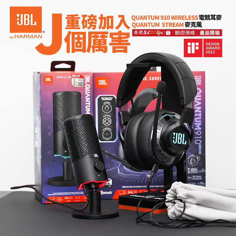 @2023/06/21 ,12:02為了滿足專業的玩家們,原價屋近期特別引進重磅之作,來自美國的JBL!這回可是要一次帶來兩樣專業又高階的產品,「JBL Quantum 910 Wireless 電競耳麥」以及「JBL Quantum Stream 專業級麥克風」!我們也特別以開箱的方式來為大家呈現,目前從官網那得知, Quantum 910 Wireless 具備整合式頭部追蹤功能技術,運用數位運算來呈現最佳的體驗,讓玩家感受到 JBL QuantumSPHERE 360 以及 DTS 音效技術帶來的震撼音效!而且他還是2.4GHz 無線的喔~而針對專業實況主設計的 Quantum Stream ,除了擁有兩種收音方式(心型/全指向),還具備專業的語音監控與即時音量控制的方便設計,加上兼容 JBL QuantumENGINE 軟體,能夠做出更多更細節又專業的調整設定,達到直播主最挑剔的要求!這次兩樣重磅產品實在讓人期待啊~跟著我們一起開箱去吧!