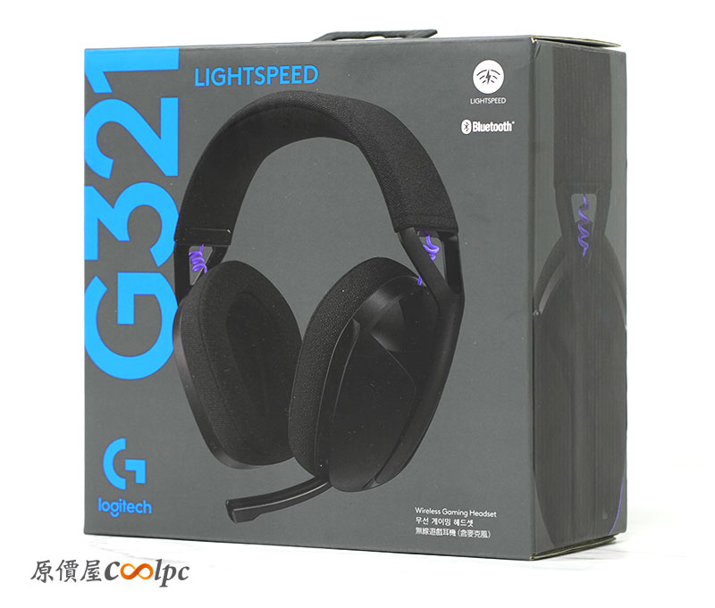 G321 Lightspeed 的外包裝採用羅技一貫的藍字黑灰底配色,正面清楚標示「LIGHTSPEED 」以及「G321」的字樣,還有產品的外型。一眼就能看出耳機的外貌身分。