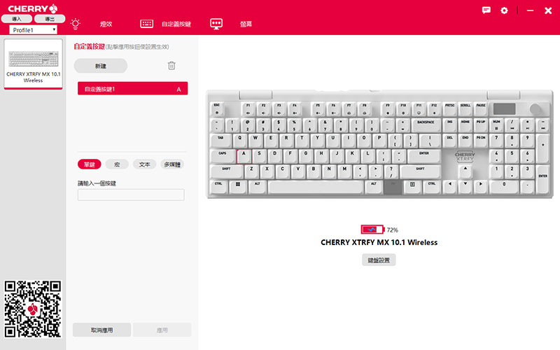 如果你需要更直覺的設定介面,那麼可以直接到官網下載 CHERRY Utility 軟體(點我前往)。有圖形化介面就是方便!軟體主要提供燈效、按鍵自定義、LCD 顯示這三大核心選項供你設定調整。
