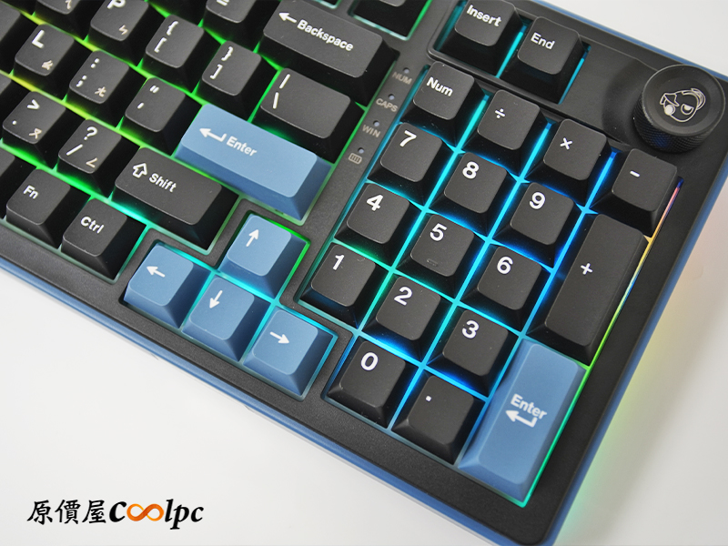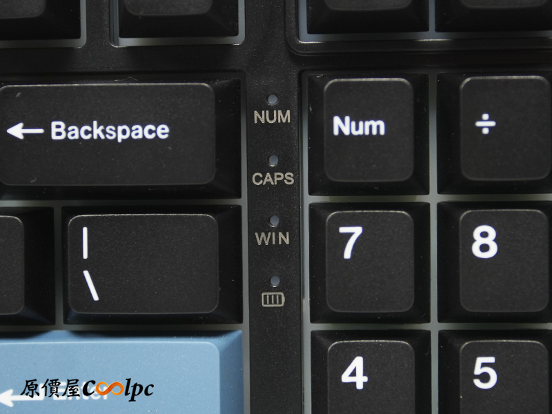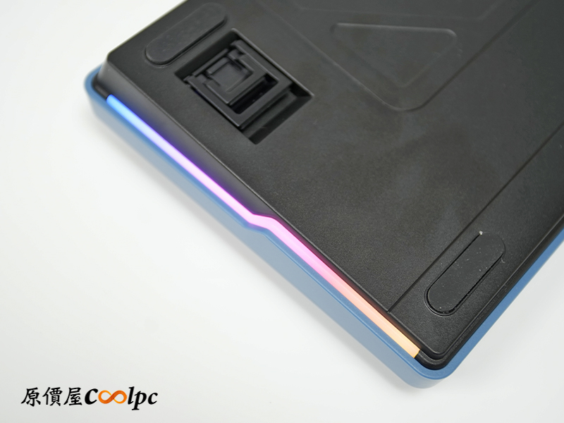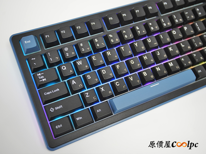 鍵帽採用 PBT 二色成型,雖然鍵盤支援 RGB 背光,不過鍵帽本身不透光。