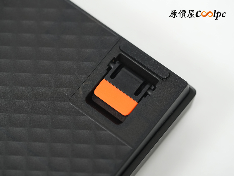 鍵盤的左下跟右上方特別用了橘色條紋來點綴,配上 Logo 字樣,讓全黑或全白的機身多了點亮點,看起來不會太單調。