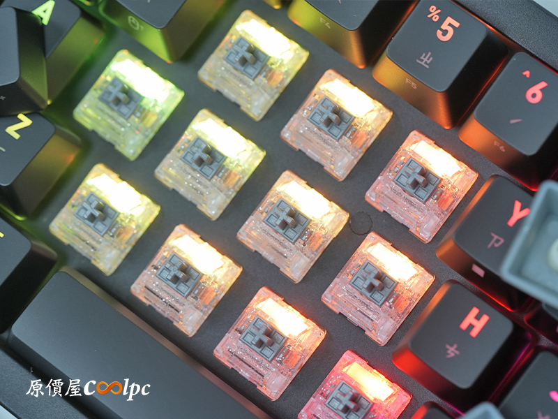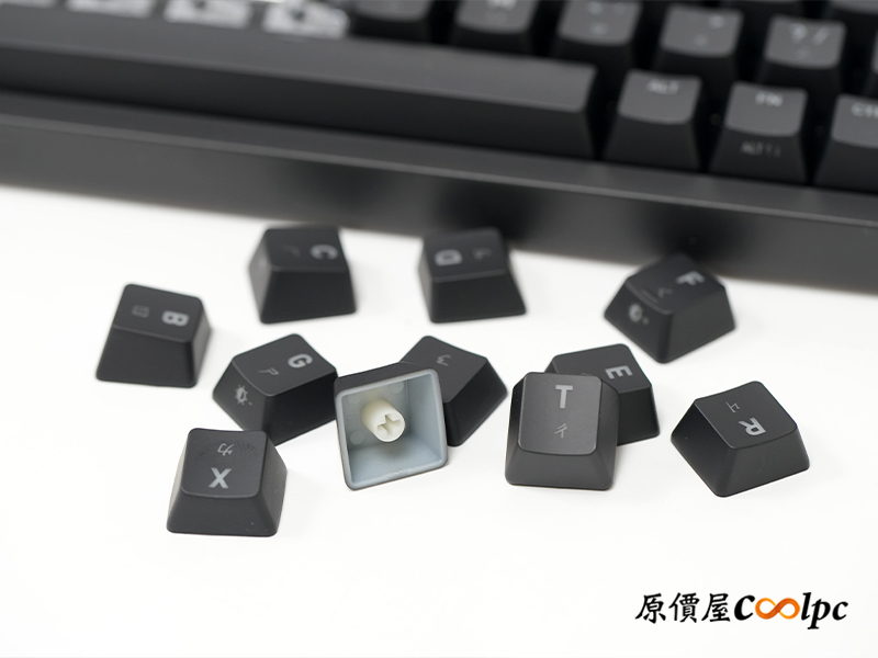 鍵帽採用 ABS 雷雕工藝,所以透光性良好,另外表面還有塗層增加止滑,也讓鍵帽更加耐用。