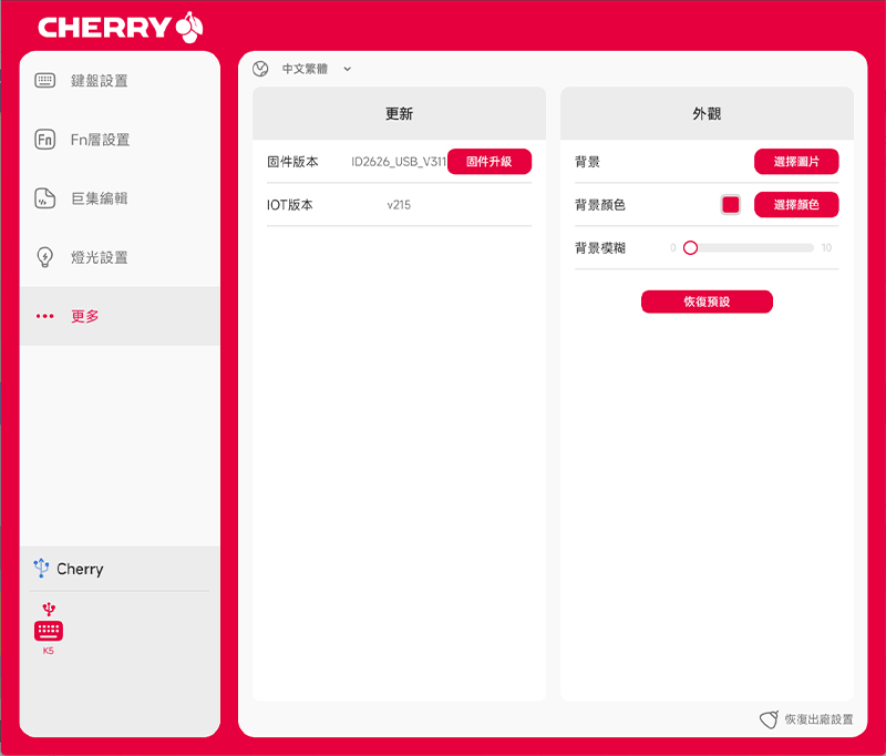 拿到新鍵盤記得先更新韌體唷!更新選項就藏在「更多」分頁裡面,建議大家三不五時就進去巡一下,說不定又有什麼新功能或優化可以載來用!