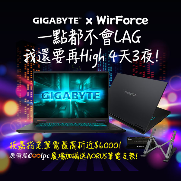 【WirForce 展場限定】一點都不會LAG,我還要再High 4天3夜!指定技嘉 GAMING A16& A16 PRO 筆電限量優惠,加碼再送筆電支架!