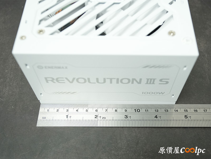 保銳REVOLUTION III S 1000W本體登場,白殼設計兩側加入REVOLUTION III S字樣,整體走一個極簡風格,而且尺寸15 x 8.6 x 14cm(W x H x D),長度僅有14cm非常俐落。
