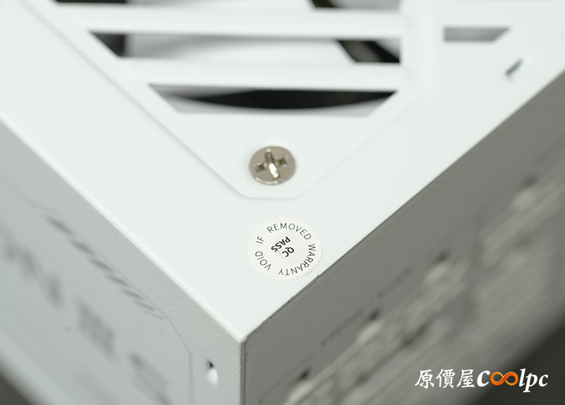 接著要拆開電源查看內部構造,其中一顆螺絲上有原廠的防拆貼紙,敬告各位玩家千萬不要自行拆卸電源,以免影響到自身的保固權益,當然也就無法享有原價屋的快換服務囉!