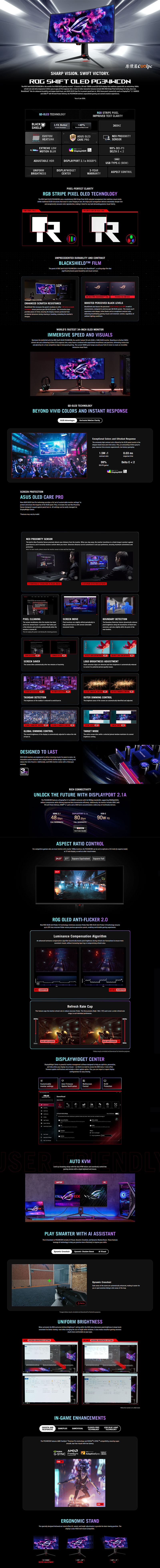 「大」不僅是尺寸的改變,也是感受度的擴張,更能讓OLED展現出色彩、深度與速度的絕對實力。當34吋 ROG SWIFT PG34WCDN曲面緊緊包裹你的視線,或是32吋ROG SWIFT PG32UCDM3的精細4K直擊你的瞳孔,都將刷新你對於頂級螢幕的認知。