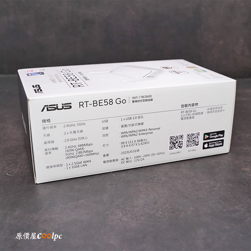 這台華碩 RT-BE58 Go 雙頻 WiFi 7 體積雖小但五臟俱全,提供公共 WiFi (WISP) 模式,支援 4G 和 5G 行動網路分享,適合出門在外旅行、行動餐車、參展等環境,透過 MLO 和 4K-QAM,雙頻 WiFi 7 速度高達 3600 Mbps,還有商業級 AiProtection 提供全天候的點對點防護和多達 30 家服務供應商全方位 VPN 功能,讓你有安全私密的網路存取,本身還能透過 USB-C 18W PD行動電源供電給路由器,出門在外網路不中斷。可透過 Guest Network Pro 輕鬆設定 IoT 裝置、VPN 子網路或訪客入口網站,方便你管理使用情境,側面還有一顆快捷按鈕,讓你快速切換不同的網路設定,非常便利,售價的部分華碩 RT-BE58 Go $2599 元含稅,歡迎有興趣的朋友可以利用網路下單,或到門市做詢問,或利用蝦皮商城下單囉。