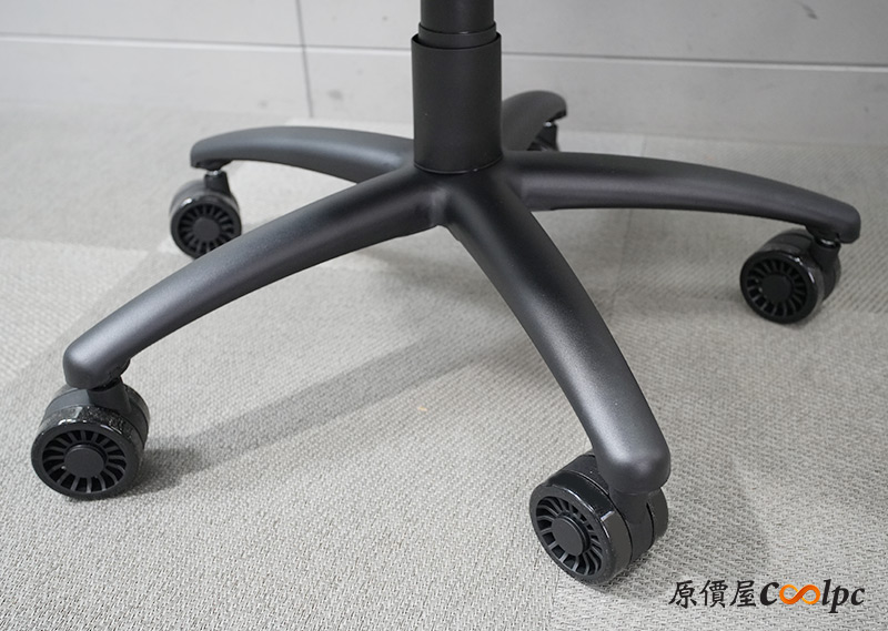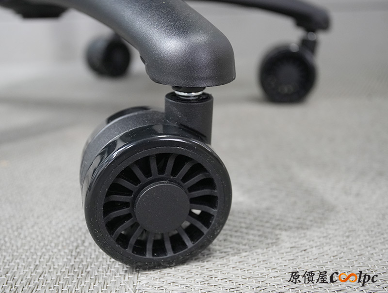 腳輪是75mm加大型設計,滾動起來阻力偏大,相對也能避免椅子自己滑動,讓椅子更穩定一些。