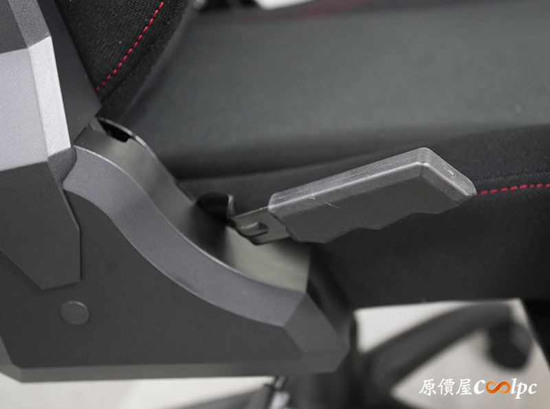 右側有手煞車狀的拉桿,拉起就能讓椅背往後倒或是回正。