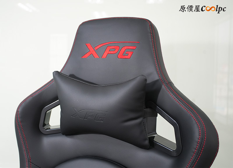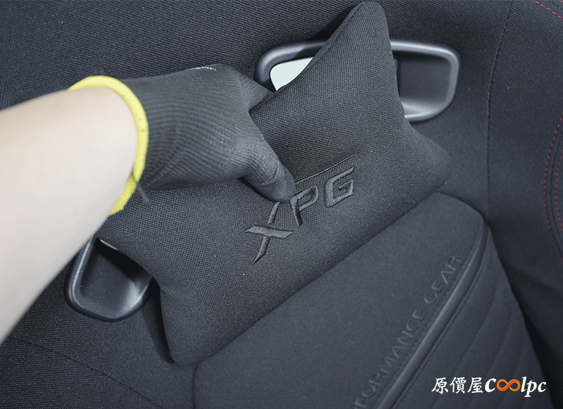 頭部正反面都有XPG LOGO。配備獨立的頭枕輔助頸部支撐,頭枕按壓起來相當有彈性。