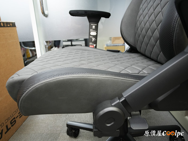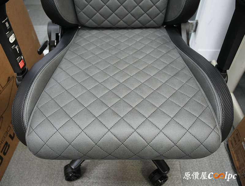 本體登場!必須說DEFENSOR S JET GRAY F這顏色我很喜歡,搭配本身仿賽車椅的設計,整體而言非常有型。椅身具備符合人體工學的曲線,面料使用觸感、耐磨度、透氣度都更好的類皮紋科技布,帶來更貼近真皮的觸感,內部則是高密度成型泡棉提供良好支撐力,再搭配椅子靈活的機構設計將舒適度推上頂峰,接著就讓我們來一一細看。