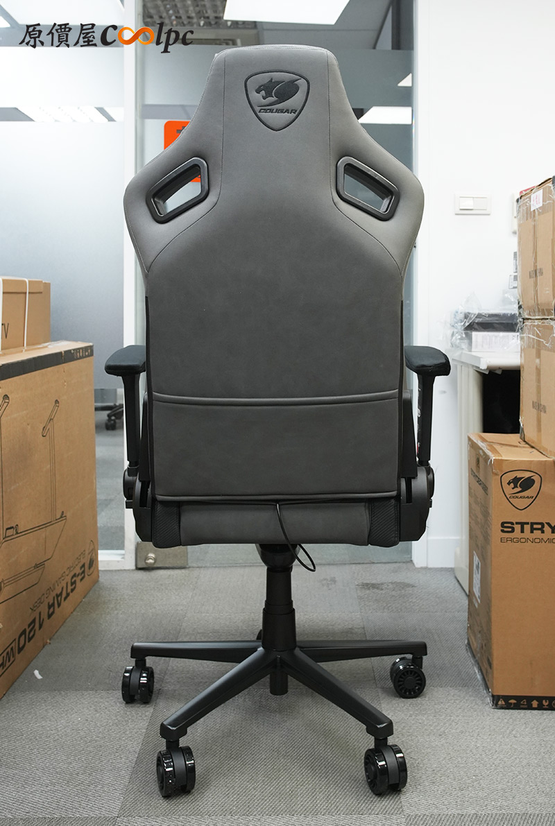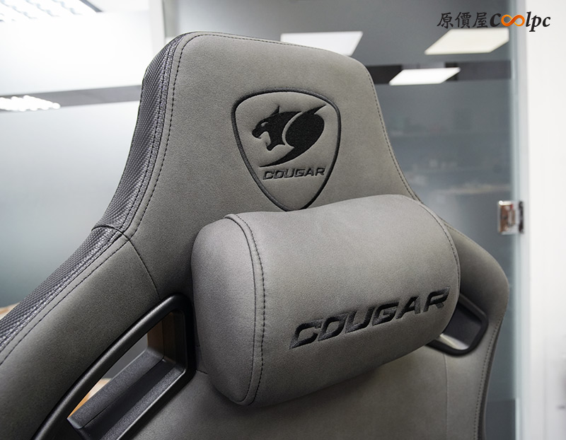 椅子有獨立的記憶棉頭枕,上面縫上COUGAR字樣,接近頭部的位置還繡上COUGAR LOGO,一眼就能輕鬆辨識出是誰家的商品,且在後方也有一個相同的LOGO。