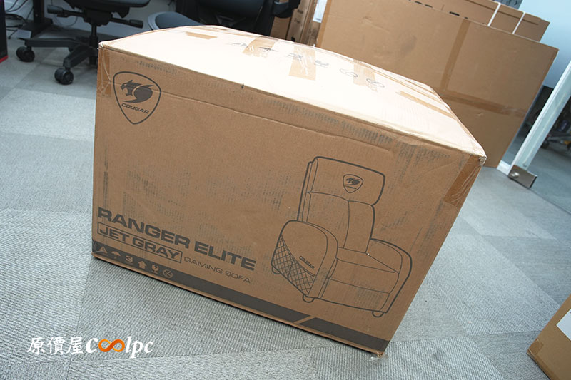 大箱登場!COUGAR RANGER ELITE 的外箱相當巨大,整張沙發以半組裝形式出貨,含包裝重量逼近 28 公斤,開箱前記得預留空間,並建議兩人搬運喔。