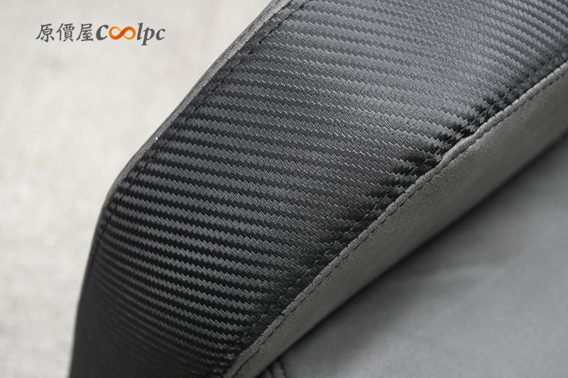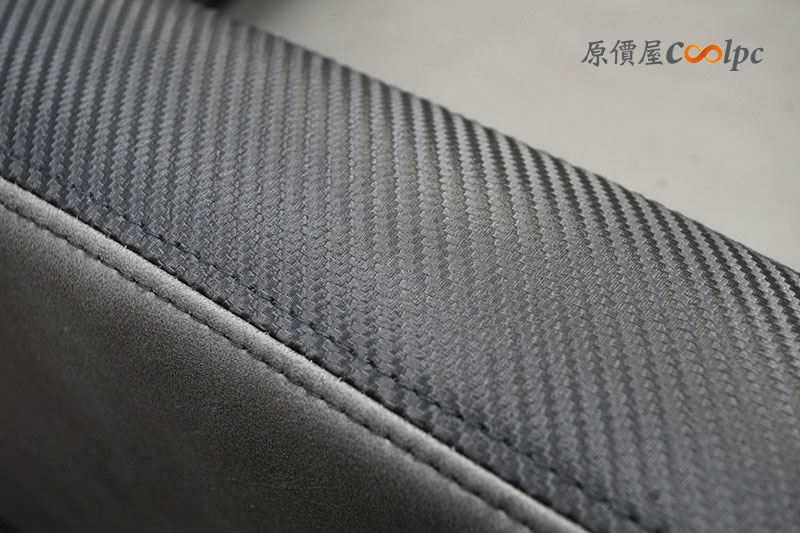 扶手上有著像是 CARBON 的立體紋路表面細紋飾條,搭配黑灰色的皮革拼接,視覺層次感真的很棒!