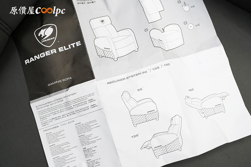 整體來說,「COUGAR RANGER ELITE JET GRAY」 電競沙發的實際表現可說是「外觀精緻 × 功能到位 × 坐感紮實」。從開箱的過程來看,產品包裝完整、組裝步驟也相當簡單,幾乎不用工具就能在短時間內完成。Jet Gray 版本的科技皮革布料觸感細膩、透氣不悶熱,搭配俐落的車縫與立體刺繡 LOGO,質感非常出色。在使用體驗上,三段式可調靠背與可伸縮腳靠是這張沙發的亮點之一,無論是打遊戲、看片,甚至小睡片刻,都能依需求快速切換姿勢。實坐時包覆感強、支撐力適中,長時間坐著也不容易塌陷。加上側邊大容量收納袋設計,實用性更上一層樓。整體而言,「COUGAR RANGER ELITE JET GRAY」不僅是一張外型吸睛的電競沙發,也兼具舒適與耐用,不論放在電競房還是客廳,都能成為視覺與體感的主角,對想升級遊戲空間的玩家來說,非常值得入手!當然我們目前也早已引進上架開賣了,價格也為 $7990 含稅,歡迎有興趣的玩家朋友前來原價屋詢問或購買。如果你其他款式的電競沙發、電競椅有興趣,那就更推薦你到我們原價屋線上估價系統或是蝦皮商城找找,當然也有些特定門市現場有展示,都歡迎大家囉~