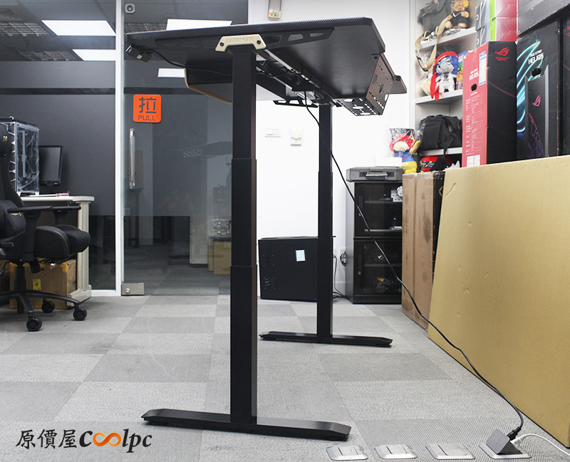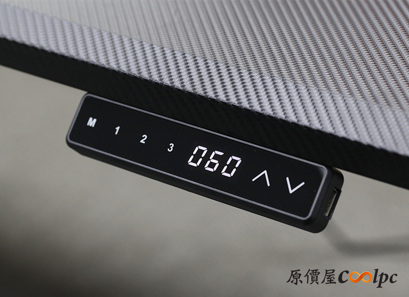 控制面板是觸控設計,上面分別有M設定鍵、1~3記憶鍵、高度顯示、上升/下降鍵。出廠預設60、77、125cm三段記憶高度,玩家們也可以自己更改想要的高度喔。