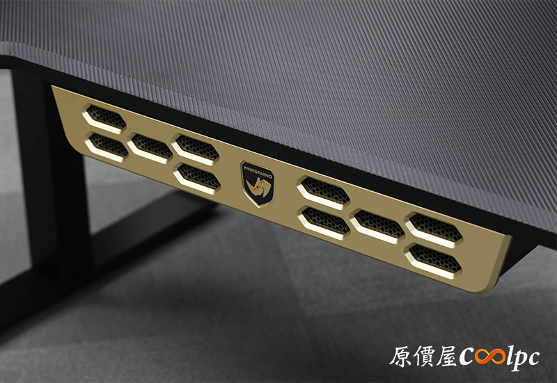 左右側翼提升桌子整體質感,並且加上鋁合金飾板點綴,採用極為醒目的金黃色,同時也是火星犀牛的招牌配色,產品特色鮮明識別度也更高了。
