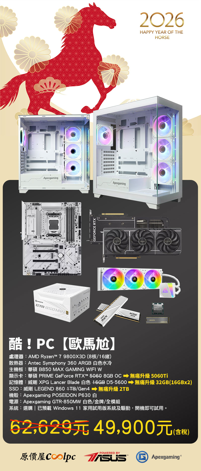 酷!PC【歐馬尬】NT$62,629↘NT$49,900|限量 75 台