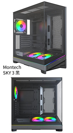 |  Montech SKY 3 黑 顯卡長44.5/CPU高18.5/全景玻璃透側/模組化可調底艙/支援背插/ATX| 尺寸:46.7*24*49 | | 支援水冷:360/280/240/120 | | 硬碟空間:3.5*2 or 2.5*2 | | 內附風扇:12*2(下)A.RGB/12*1(後)A.RGB | | 風扇支援:12/14*2(側)/12*2(下) | | 風扇支援:12*3 or 14*2(上)/12/14*1(後) | | 前I/O:U3*2+TYPE-C*1 | | 含稅價: NT2190 ◆開箱討論 |