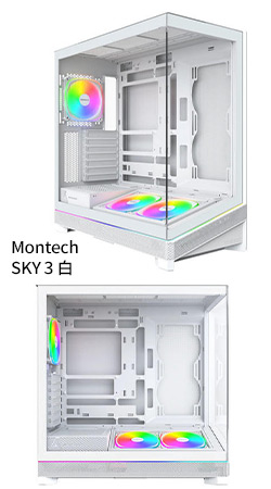|  Montech SKY TWO GX 白 顯卡長40/U高16.8/玻璃透側/E-ATX 送AX120(白) 風扇*1| 尺寸:46*21.5*50 | | 支援水冷:360/280/240/120 | | 硬碟空間:3.5*2/2.5*6 | | 內附風扇:14*3(前)A.RGB(AX140) | | 風扇支援:12/14*3(前)/12*3 or 14*2(上)12*2(側/下)/12*1(後) | | 前I/O:U3*2+TYPE-C*1 | | 含稅價: NT2690 ◆開箱討論 |