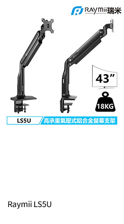 【螢幕搭購】Raymii LS5U (單螢幕/穿夾兩用/高負重氣壓/17-43吋/承載18KG) $2,799↘