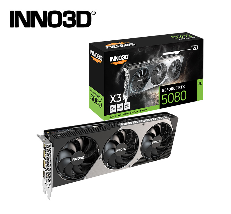 INNO3D RTX5080 X3(2617MHz/30cm/註冊四年/三風扇/Dual Slot) $36888>蝦皮商城>官網