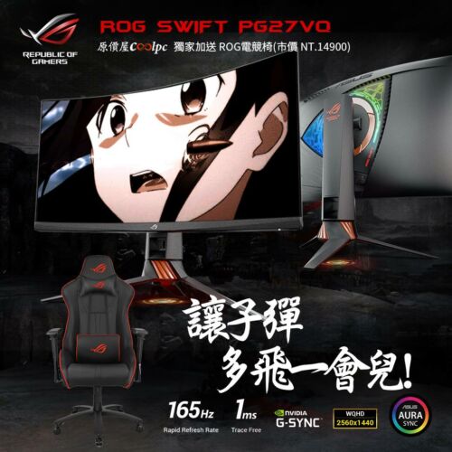 敗家國度,破關!華碩ROG SWIFT PG27VQ 電競螢幕贈送ROG電競椅!