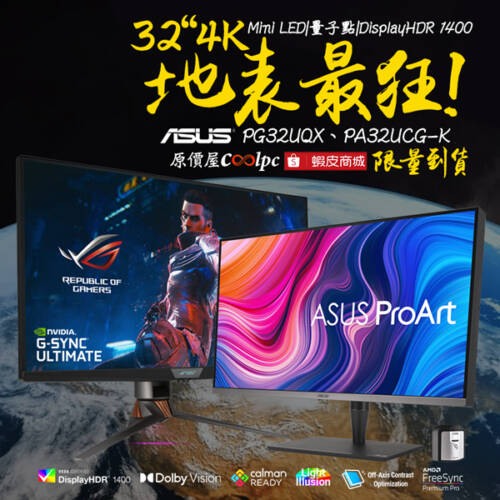 【原價屋蝦皮商城限定】地表最狂!華碩32吋4K HDR、MiniLED、量子點螢幕。ROG PG32UQX、ProArt PA32UCG-K限量到貨!