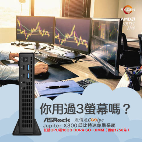 最省錢三螢幕效率方案!ASRock Jupiter X300小主機任搭CPU送16GB DDR4記憶體!