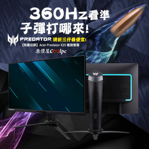 不換 360Hz,打輸怪我囉?Acer Predator X25 電競螢幕折三仟!