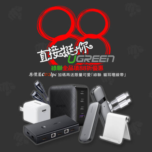 綠聯UGREEN絕不婆媽!直挺挺的給你全系列優惠88折!