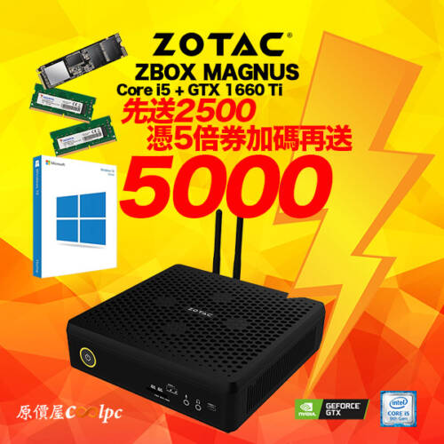 先送2500憑5倍券加碼再送五仟!ZOTAC ZBOX MAGNUS EN51660T優惠又來啦!