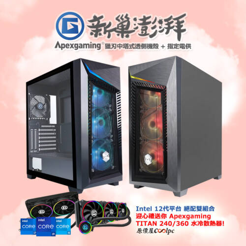 新巢澎湃!Apexgaming 獵刃透側機殼+艾湃指定電供 送TITAN 240/360 迎心禮!