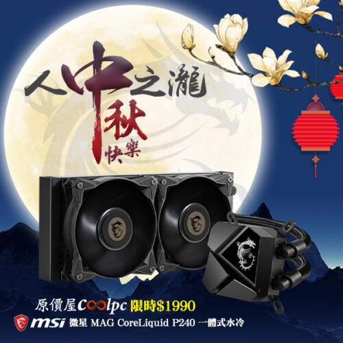月圓瀧團圓!微星 MAG CoreLiquid P240 一體式水冷限時 $1990。