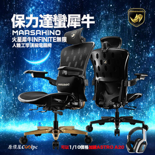 保力達蠻犀牛,買MARSRHINO INFINITE無限人體工學頂級電競椅就可以1/10價格加購ASTRO A20頂級無線耳機!
