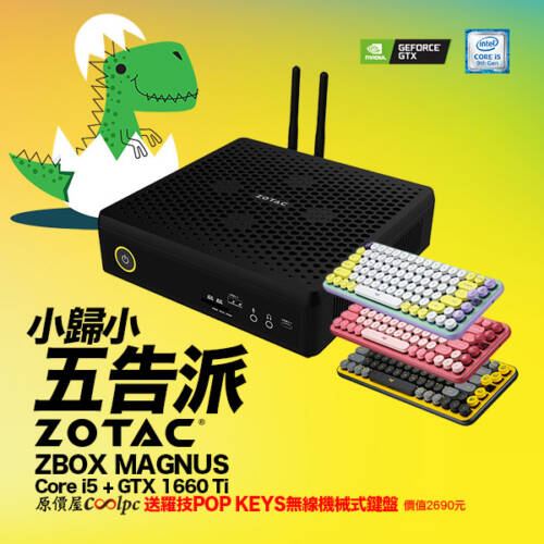 小歸小五告派!GTX 1660 Ti加持ZOTAC ZBOX MAGNUS EN51660T小主機送POP KEYS無線機械鍵盤!