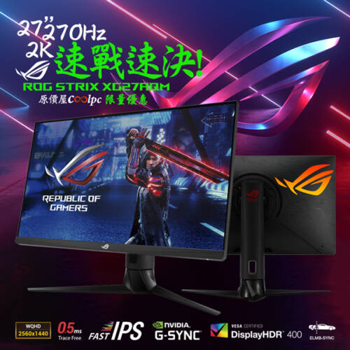華碩ROG讓你遊戲順順利利!XG27AQM螢幕限量免兩萬。