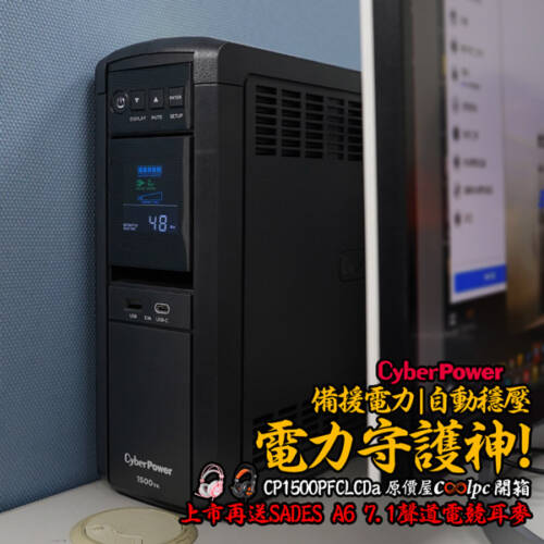 【新品優惠+開箱】不怕跳電、雷擊突波襲擊,因為我有CyberPower不斷電系統撐腰!CP1500PFCLCDa送虛擬7.1聲道耳機。